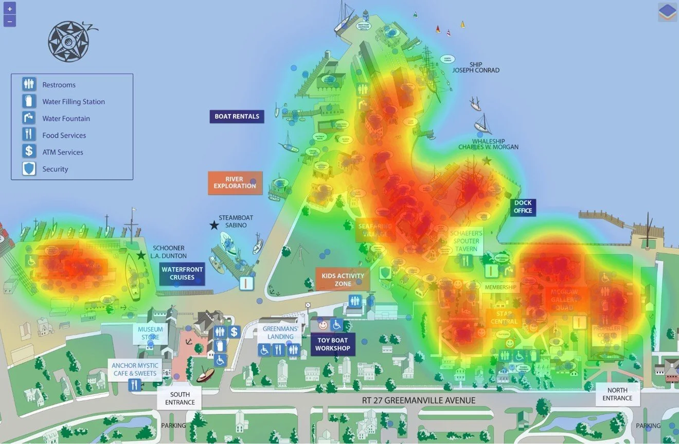 In the Discovery Phase, a heat map visualizes concentrations of memorable visitor experiences on the museum campus.